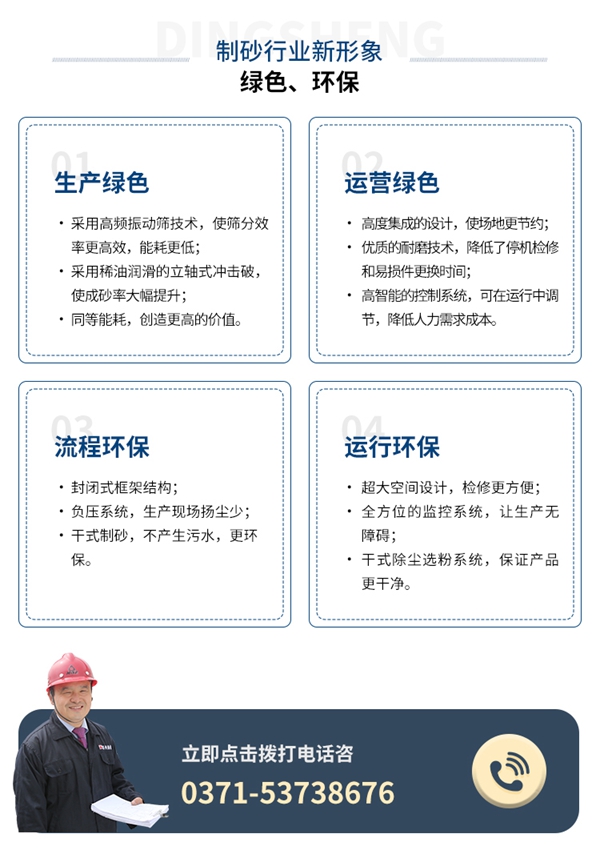 對(duì)于利于環(huán)保, 傳統(tǒng)的濕法生產(chǎn)線生產(chǎn)過(guò)程需大量水對(duì)砂進(jìn)行清洗, 從一定角度來(lái)講對(duì) 于水資源是一種浪費(fèi),并且對(duì)于在生產(chǎn)過(guò)程中產(chǎn)生的石粉的沖洗也是對(duì)礦產(chǎn)資源的一種浪 費(fèi)。而干法則正好避免了這些, 所以從某種程度上節(jié)約了水資源和礦產(chǎn)資源, 比濕法生產(chǎn)線 更加環(huán)保。