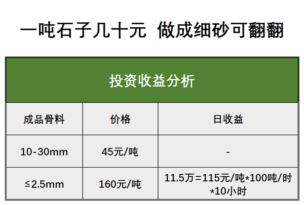 2017年初,河南省滎陽市賈峪鎮(zhèn)一采石場業(yè)主看到了當?shù)厥袌?.5mm以下細砂市場緊缺,價格一再上漲,幾乎可以到達200元/噸的市場機遇,這類細砂主要供應砂漿站,果斷決定進入該領域——以一噸45元的價格從當?shù)仄渌蠄鲑徺I10-30mm的石子,以鄭州鼎盛公司生產的YM預磨機為主機,對10-30mm的石子進行制砂,成品為2.5mm以下的細砂,含粉率在10%以下,噸售價在160元/噸,而且供不應求。