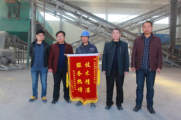 圖為客戶對該套制砂設備制砂效果滿意,向鄭州鼎盛公司贈送錦旗