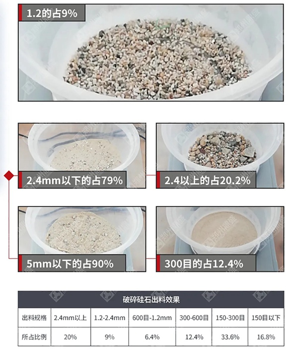 01破碎:采用“鐵打石”、“石打鐵”,將小粒徑、低動能物料高效粉碎,粒型圓潤,成砂率高,可將瓜米石轉(zhuǎn)換成高品質(zhì)機(jī)制砂。02篩分:運(yùn)用于針對細(xì)骨料篩分的專用高性能篩分裝備,使篩分更高效。03風(fēng)選:集篩分風(fēng)選的合理運(yùn)用,將物料分為粗細(xì)不同的砂和粉,分級精度高,成品級配合理,符合國家《建筑用砂》標(biāo)準(zhǔn)。