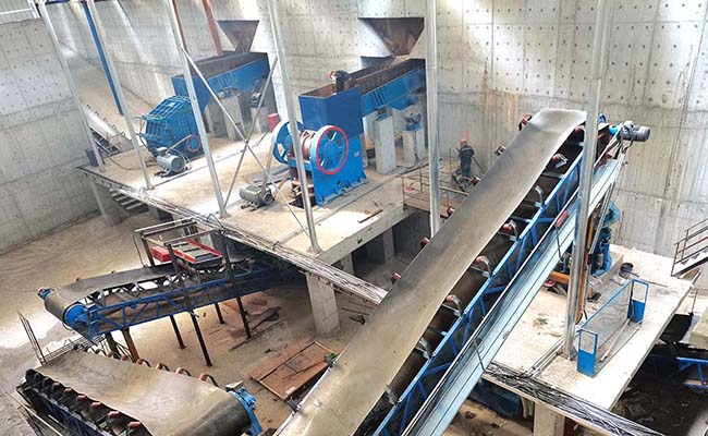 配置一:給料機(jī)+顎破+反擊破+振動(dòng)篩+制砂機(jī)+輸送機(jī)