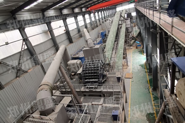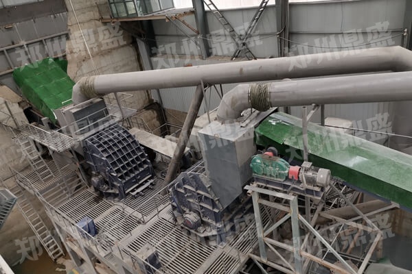 料倉內(nèi)的物料進(jìn)入振動篩分喂料機(jī)后,喂料機(jī)前端篦條將物料分成兩種物料<70mm和>70mm,其中<70mm經(jīng)皮帶輸送機(jī)送至除土篩,經(jīng)除土篩篩分出>10mm和<10mm兩種物料,其中<10mm的作為渣土經(jīng)由輸送機(jī)輸送至廢渣區(qū)存儲,>10mm被送至ZPC1820錘式破碎機(jī)后篩分上料皮帶;>70mm的物料經(jīng)過溜槽直接進(jìn)入ZPC1820錘式破碎機(jī)進(jìn)行粗碎。
