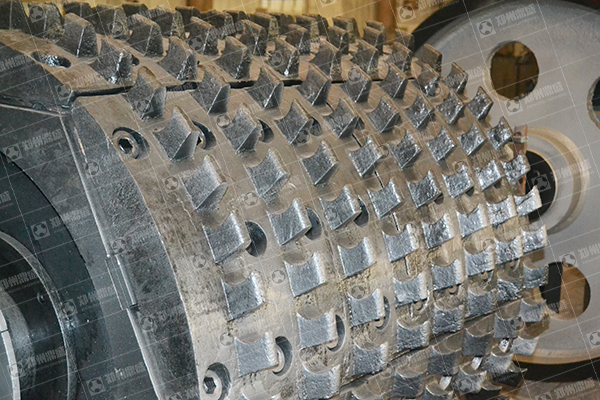 每組齒輥由六塊月牙形的破碎齒板、通過高強(qiáng)度螺栓與輥軸上的固定架聯(lián)接而成,破碎齒板采用高強(qiáng)度、高強(qiáng)度耐磨合金鑄鋼鑄鋼制造,齒部表面經(jīng)滲碳、氮化處理滲透深度>3mm,具有可靠的耐磨性能和高強(qiáng)度的抗沖擊性能,連續(xù)使用壽命達(dá)20000小時以上,齒板磨損后便于更換。