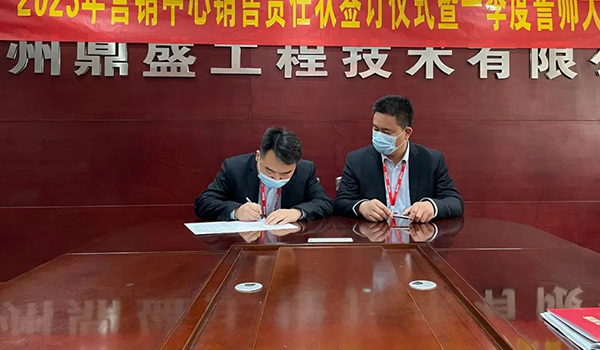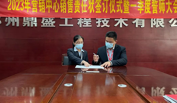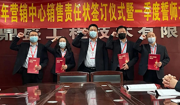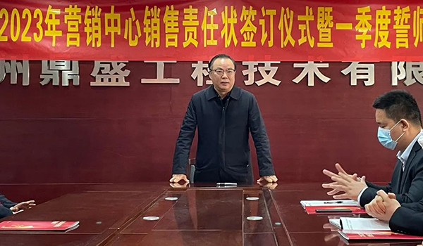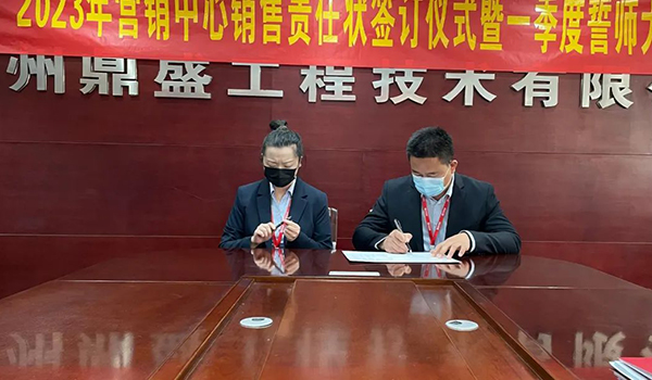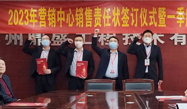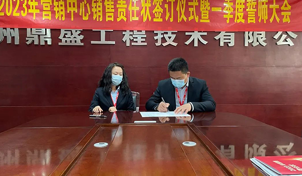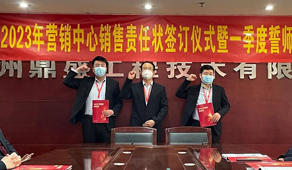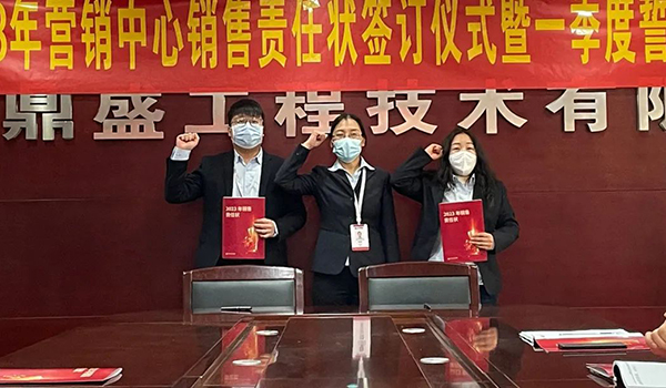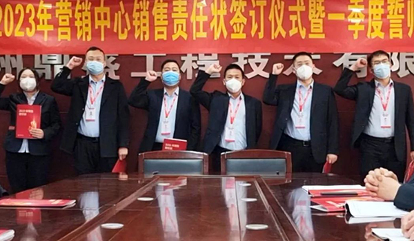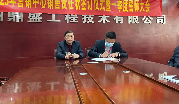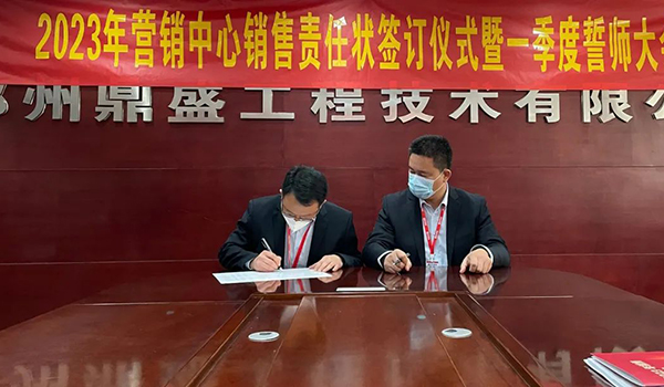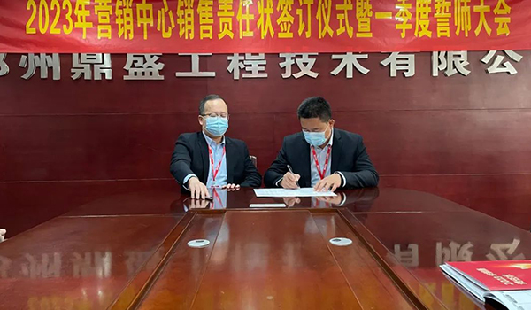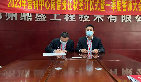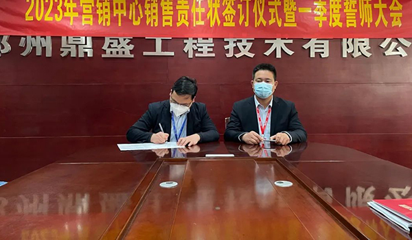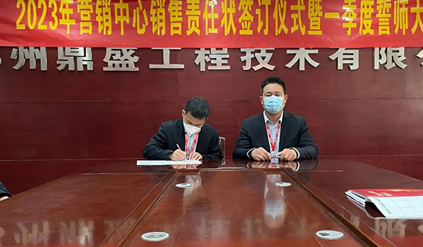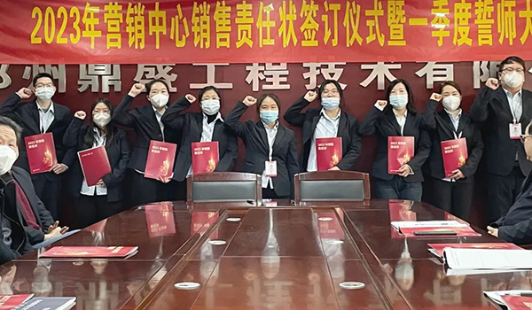 蓄力量、育希望、創(chuàng)輝煌。近日,鄭州鼎盛為確保2023年度銷售工作取得突破性進展,再上一個新臺階。營銷中心全體齊聚公司總部,舉行“2023年營銷中心銷售責任狀簽訂儀式暨一季度誓師大會”,公司主要領(lǐng)導出席儀式。