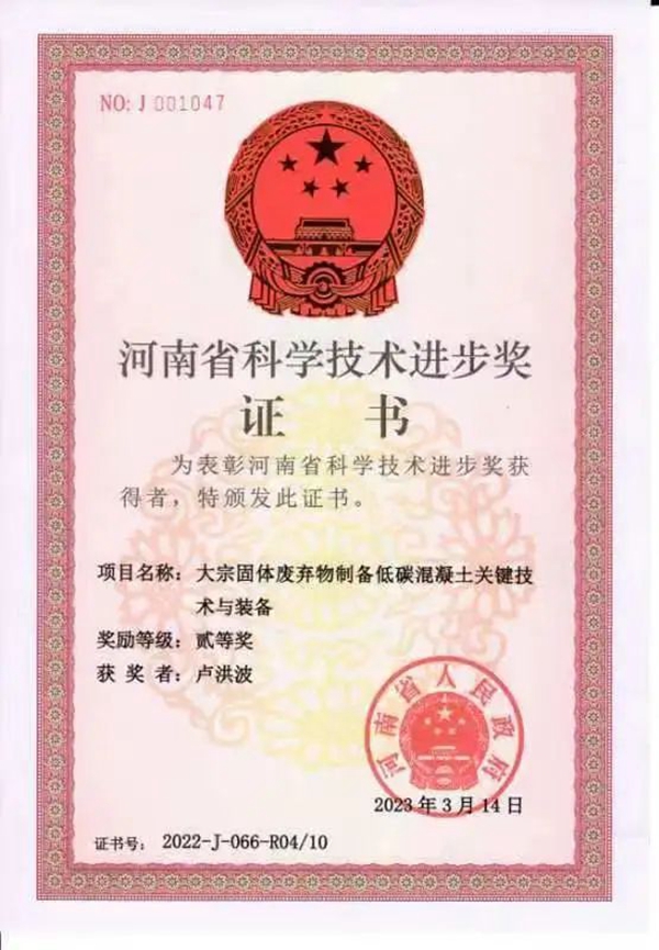 3月24日,河南省人民政府發(fā)布《關(guān)于2022年度河南省科學(xué)技術(shù)獎(jiǎng)勵(lì)的決定》。根據(jù)《河南省科學(xué)技術(shù)獎(jiǎng)勵(lì)辦法》(省政府令第57號(hào))規(guī)定,經(jīng)省政府常務(wù)會(huì)議審議,特別對2022年度河南省科學(xué)技術(shù)杰出貢獻(xiàn)獎(jiǎng)、河南省自然科學(xué)獎(jiǎng)、河南省技術(shù)發(fā)明獎(jiǎng)、河南省科學(xué)技術(shù)進(jìn)步獎(jiǎng)等進(jìn)行表彰獎(jiǎng)勵(lì)。其中由鄭州鼎盛聯(lián)合華北水利水電大學(xué)、中建七局第四建筑有限公司共同完成的“大宗固體廢棄物制備低碳混凝土關(guān)鍵技術(shù)與裝備”項(xiàng)目,喜獲河南省科學(xué)技術(shù)進(jìn)步二等獎(jiǎng),填補(bǔ)了鄭州鼎盛在該領(lǐng)域內(nèi)的空白,為公司在技術(shù)創(chuàng)新領(lǐng)域開創(chuàng)新局面。