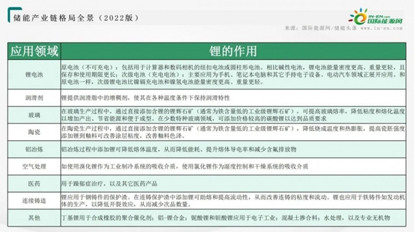 在傳統(tǒng)領(lǐng)域,鋰可以用于生產(chǎn)新型合成橡膠、新型工程材料、陶瓷和稀土冶煉等,被譽為“工業(yè)味精”;而今,鋰又被稱為“白色石油”,因為其在新能源領(lǐng)域,是鋰離子電池主要的原材料,是電池和電源領(lǐng)域無可爭議的較佳元素,被稱為“能源金屬”;在醫(yī)藥領(lǐng)域,鋰是生產(chǎn)他汀類降脂藥和新型抗病毒藥等新藥品的關(guān)鍵中間體。