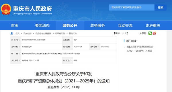 重慶市礦產(chǎn)資源總體規(guī)劃(2021—2025年)