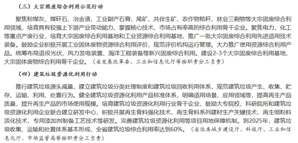 ——鼓勵大宗固廢綜合利用、建筑垃圾資源化利用,建設2-3個大宗固廢綜合利用基地、大宗固體廢物綜合利用骨干企業(yè),全省建筑垃圾綜合利用率達到60%。