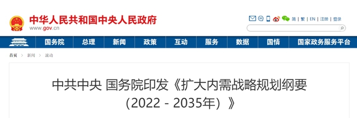 《綱要》指出,堅(jiān)定實(shí)施擴(kuò)大內(nèi)需戰(zhàn)略、培育完整內(nèi)需體系,是加快構(gòu)建以國(guó)內(nèi)大循環(huán)為主體、國(guó)內(nèi)國(guó)際雙循環(huán)相互促進(jìn)的新發(fā)展格局的必然選擇,是促進(jìn)我國(guó)長(zhǎng)遠(yuǎn)發(fā)展和長(zhǎng)治久安的戰(zhàn)略決策。